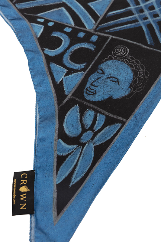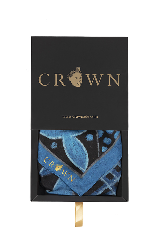 As a tribute to Adire we have printed the custom painted images of coloured Adire variations on our silk scarves, providing the soft luxury feel of silk combined with our timeless colourful patterns. Our signature ‘Oduduwa head’ is visibly embedded within the Adire pattern.