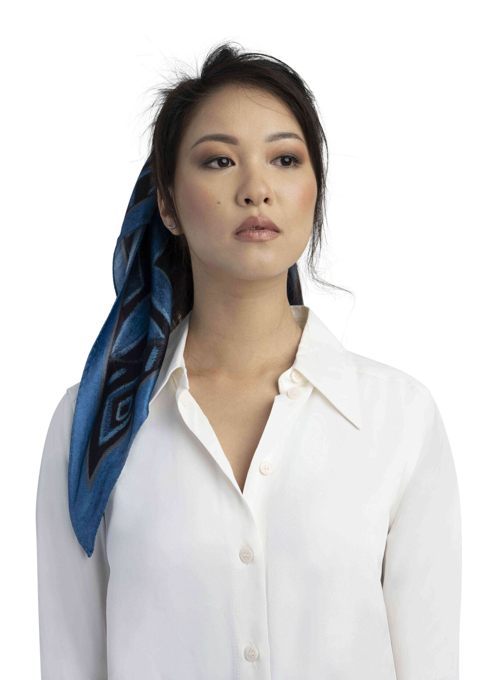 The triangular shape of the scarf makes it easy to wear around your neck, as a head scarf or as a hair tie.